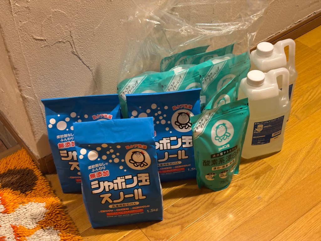 シャボン玉石けんの製品をたくさん買い込みましたぞ。🧼